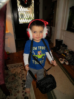 He did look pretty in his sissy's ear muffs though.